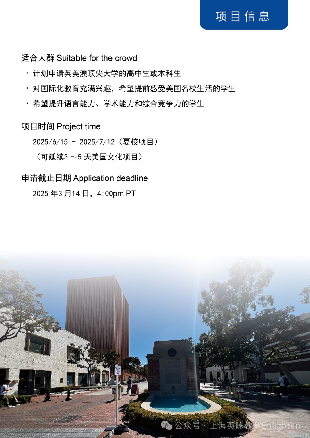 背景提升:美国学校夏校项目(USC)